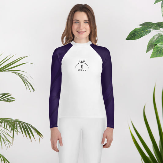 I AM WELL Girls' Rash Guard Purple w/ White Logo